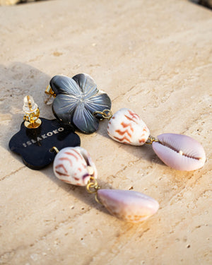 Embrace island elegance with these enchanting hand crafted earrings, featuring Cook Islands mother of pearl shells intricately carved into delicate tropical flowers. Paired with soft, pale pink Hebrew conch shells and natural cowrie shells, each element captures the spirit of the ocean and sun-drenched shores. The pieces are accented with gleaming gold fixtures, adding a luxurious touch to the organic beauty. Light, graceful, and full of coastal charm, these earrings are a true celebration of nature’s artistry and timeless craftsmanship.