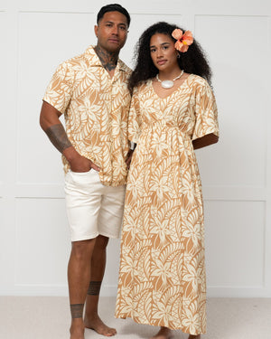 Inspired by the warm glow of island mornings, Lagoon in Banana Palm brings a fresh, sunlit twist to our signature Lagoon Polynesian inspired print. Soft banana yellow tones blend seamlessly with rich caramel accents, creating a gentle yet grounded palette that captures the relaxed warmth of tropical living. This colourway radiates effortless island elegance — modern, uplifting, and perfectly at home under golden skies.