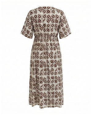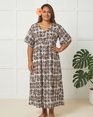 A stunning floaty, boho style dress that features loose floating sleeves and a flattering V-neck with soft elasticated waistline that cinches in under the bust. This full-length maxi dress elegantly drops straight down and has two side splits. If you love comfort and style all in one this is the dress for you.