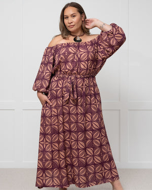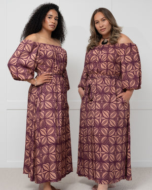 A new expression of ISLAKOKO’s signature print, Pacific Floral in Violet Dawn, showcases a refined harmony of colour and culture. This two-tone design pairs soft violet with a rose-toned warm clay, creating a gentle yet striking balance of calm and warmth. Featuring the Polynesian flower symbol, the print embodies strength, femininity, and connection to nature — a timeless reflection of Pacific heritage. Elegant and contemporary, Violet Dawn perfectly represents ISLAKOKO’s modern island spirit.
